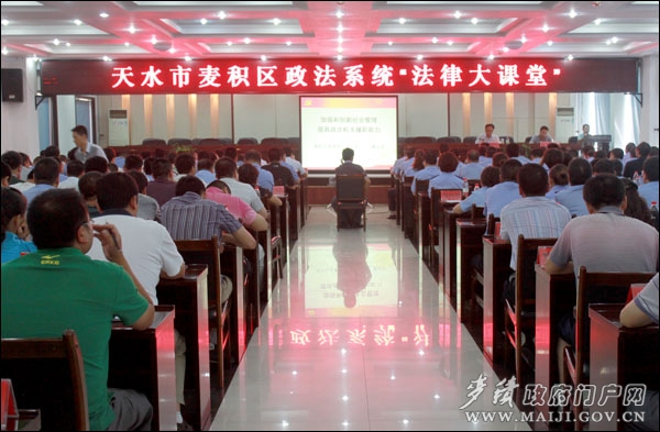 8月10日下午,麥積區(qū)啟動(dòng)全區(qū)政法系統(tǒng)“法律大課堂”活動(dòng),區(qū)委常委、政法委書記臧志軍作了題為《加強(qiáng)和創(chuàng)新社會(huì)管理 提高政法機(jī)關(guān)履職能力》的開班講座,區(qū)委政法委副書記、綜治辦主任趙宏主持。區(qū)公、檢、法、司、交領(lǐng)導(dǎo)班子成員、中層領(lǐng)導(dǎo)、部分一線干警,綜治成員單位負(fù)責(zé)人,鄉(xiāng)鎮(zhèn)、街道分管綜治工作的領(lǐng)導(dǎo)、綜治辦專職副主任和全區(qū)社會(huì)管理創(chuàng)新工作試點(diǎn)村(社區(qū))的黨支部書記共計(jì)200余人參加此次講座。