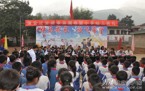 9月21日,麥積區(qū)伯陽鎮(zhèn)保安村泛亞班拿苗圃希望小學(xué)人頭攢動,鞭炮齊鳴,熱鬧非凡,該?⒐さ涠Y在這里隆重舉行。