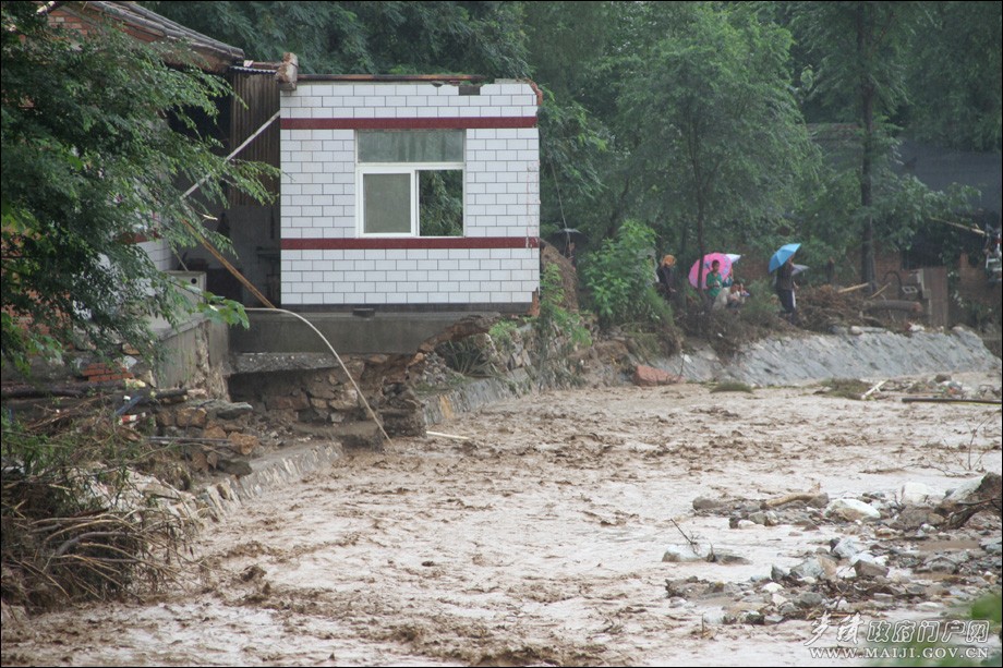 (甘泉鎮(zhèn)峽門(mén)村民房在洪水中岌岌可危)