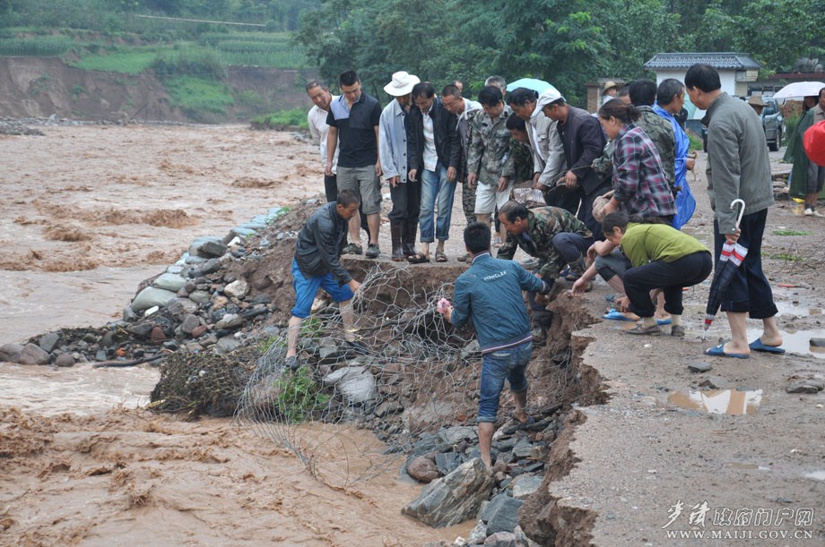 自6月份以來,麥積區(qū)多次遭遇強降雨天氣。氣象部門統(tǒng)計,僅6月19日至20日,7月8日和7月21日,麥積區(qū)接連遭受三次強暴雨侵襲,最大降雨量累計超過150毫米,為50年一遇的特大暴雨。強降雨致使麥積區(qū)中、東路部分鄉(xiāng)鎮(zhèn)損失巨大,農(nóng)田大面積被淹,部分河堤被沖毀,橋梁、道路、通訊、電力設(shè)施嚴(yán)重?fù)p毀,農(nóng)房倒損嚴(yán)重。而7月22日的定西6.6級地震,使麥積區(qū)區(qū)域內(nèi)一些山體疏松、存在裂縫的地質(zhì)災(zāi)害點險情加劇。