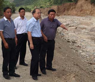 (區(qū)委張智明書記在李家渠查看災(zāi)情)