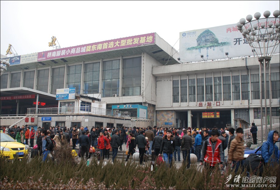 1月28日(農(nóng)歷臘月廿八)一大早,記者來到天水火車站,用鏡頭記錄了游子們歸鄉(xiāng)的匆忙腳步。從8:10至10:40的兩個(gè)半小時(shí)的時(shí)間里,先后有K543(重慶北—烏魯木齊)、K377(上!鲗幬)、T193(漢口—烏魯木齊)、T113(杭州—蘭州)、T151(北京西—西寧西)、K170(庫爾勒—西安)、K861(漢口—蘭州)、K621(武昌—西寧西)等八趟列車在天水站?。而隨著每次列車的短暫停靠,火車站及周邊就會(huì)沸騰半天:接親友的人群將出站口團(tuán)團(tuán)圍住,相互談?wù)撝,不時(shí)向站臺(tái)里面張望;一會(huì)兒,拖著大包小包的人流涌出了車站,將圍攏的人群沖散開來。他們有的與親友噓寒問暖,臉上洋溢著重逢的喜悅和幸福;有的來不及戴上手套,顧不上天氣寒冷,直接打車或奔赴轉(zhuǎn)乘車站回家,因?yàn)榇丝袒丶疫^年是他們最大的心愿。