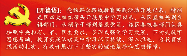 區(qū)農(nóng)業(yè)局:認(rèn)真研讀、細(xì)心梳理和準(zhǔn)確理解的基礎(chǔ)上,創(chuàng)新性地總結(jié)歸納出教育實(shí)踐活動(dòng)重點(diǎn)內(nèi)容“12345678”八要訣學(xué)習(xí)記憶法: