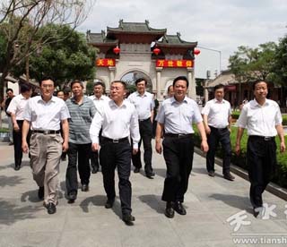 6月19日,麥積區(qū)委常委、政法委書記臧志軍帶領區(qū)委辦、維穩(wěn)辦、公安分局、信訪局、安監(jiān)局、運管分局、交警大隊、消防等單位主要負責人,深入卦臺山及城區(qū)安保巡防執(zhí)勤點,就伏羲文化節(jié)會安保工作進行了現(xiàn)場督查和指導。
