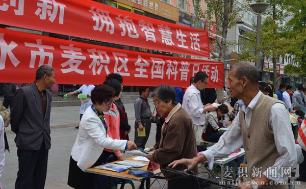 9月18日上午,由麥積區(qū)科協(xié)、區(qū)教體局、區(qū)科技局、區(qū)工信局聯(lián)合舉辦的以“萬眾創(chuàng)新,擁抱智慧生活”為主題的2015年天水市麥積區(qū)“全國科普日”活動(dòng)在商埠路拉開帷幕。