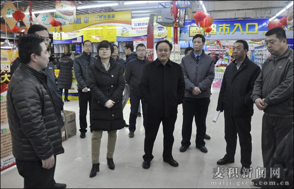 為了切實(shí)加強(qiáng)春節(jié)期間市場監(jiān)管,有效維護(hù)市場穩(wěn)定秩序,切實(shí)保障消費(fèi)者利益,確保廣大人民群眾過一個歡樂祥和的節(jié)日,2月3日,麥積區(qū)委常委、政法委書記臧志軍,區(qū)人大常委會副主任方明太,副區(qū)長汪亞偉帶領(lǐng)區(qū)政府辦、工商局、食藥監(jiān)局、商務(wù)局、質(zhì)監(jiān)局、衛(wèi)生監(jiān)督分局等部門負(fù)責(zé)人,對春節(jié)前市場進(jìn)行了安全大檢查。