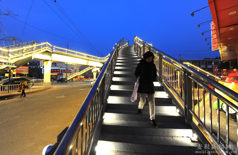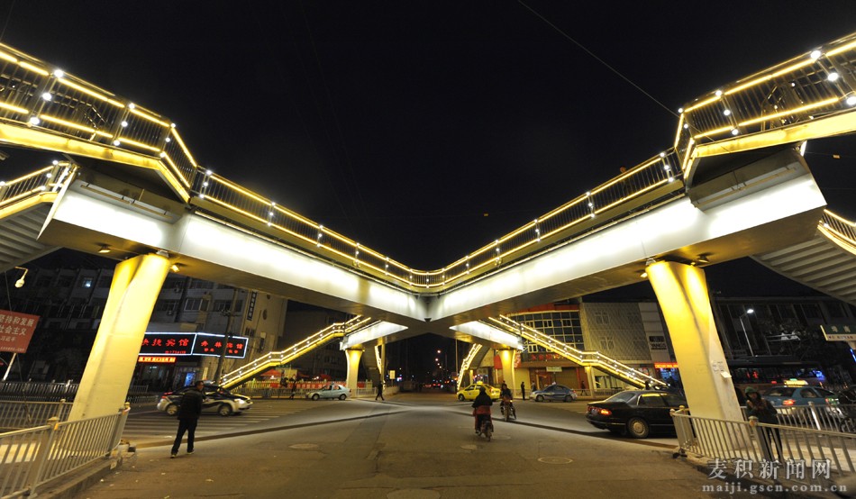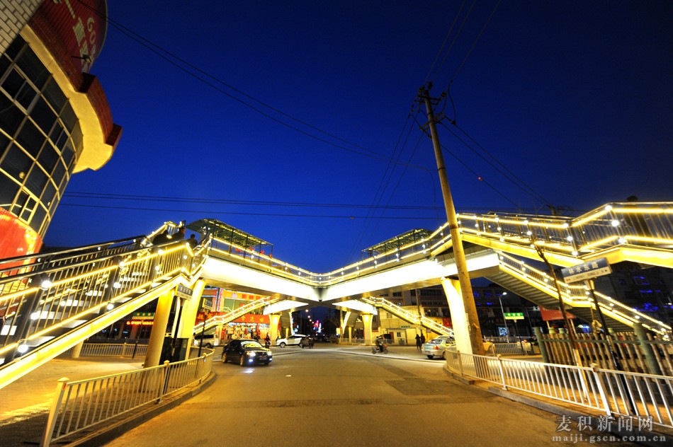 每當夜幕降臨、華燈初上時分,麥積區(qū)埠南路——林水路什字人行天橋的LED造型亮化燈同時“點亮”,整座橋猶如飛架在城市上空的“彩虹”,既美化了麥積夜色,又方便了市民出行,市民“點贊”聲一片嘩然。