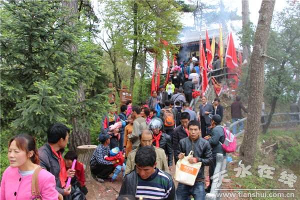 農(nóng)歷四月初一,傳說是道教無量祖師降生之日,天水民間在這一天有燒香祈福的習(xí)俗,拜娘娘求姻緣求子、拜文昌求學(xué)、拜藥王祛病。石門山作為隴東南地區(qū)的道教勝地,以秀美的風(fēng)光、密集的道教古建筑群、醇厚的宗教氛圍,吸引了大批善男信女慕名而來。今年的廟會恰逢雨后初晴,石門云海更顯獨特魅力,神秘的殿宇,雄偉的山巒,熙攘的人群,所有的一切恍惚在云霧中若隱若現(xiàn),宛若置身仙境。來自各地的信眾登上三千多級天梯,云集在三清殿廣場,舉辦大型廟會活動。點燈、上香、擺供、叩拜,所有的一切都是那么虔誠,滿山香客、裊裊的煙云與石門勝景構(gòu)成了一幅美麗的畫卷。