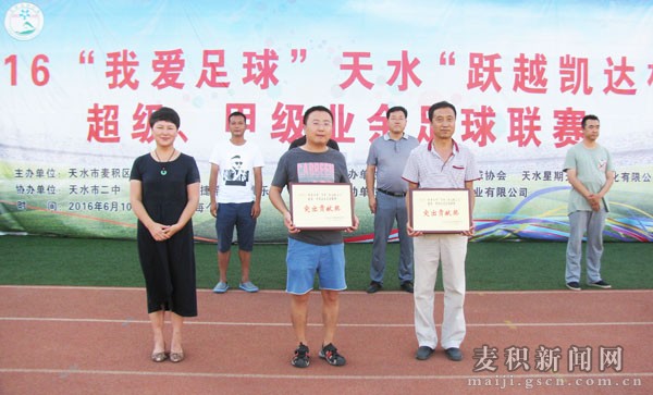 7月30日下午,天水市我愛足球“躍越凱達(dá)杯”超級、甲級業(yè)余足球聯(lián)賽閉幕式在天水市二中體育場舉行。麥積區(qū)委常委、宣傳部長董珺出席閉幕式并為獲獎隊(duì)員頒獎。