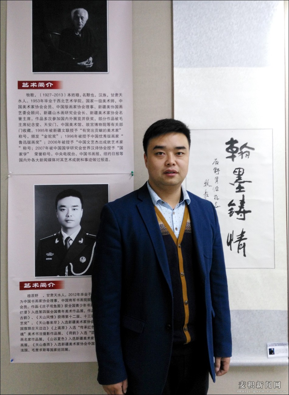 今值牧歌先生逝世三周年之際,為了讓家鄉(xiāng)人民更多地了解牧歌的藝術(shù)成就,實現(xiàn)其魂歸故里之夙愿。原野先生自新疆往返數(shù)千里,于故里舉辦二人畫展。其追求藝術(shù)、銘記家訓(xùn)之情尤可贊也。
