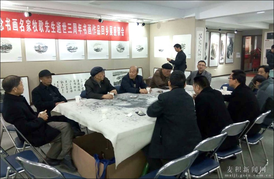 日前,紀(jì)念著名畫家牧歌先生逝世三周年“翰墨鑄情”牧歌、原野書畫作品回鄉(xiāng)展在麥積區(qū)文化館開展,展出牧歌先生及其族孫穆原野書畫作品170多幅。展覽期間還舉辦了“紀(jì)念著名畫家牧歌先生逝世三周年書畫作品回鄉(xiāng)展座談會”,麥積區(qū)的書畫家共聚一堂,以座談、筆會的形式表達對牧歌先生的追思與懷念。