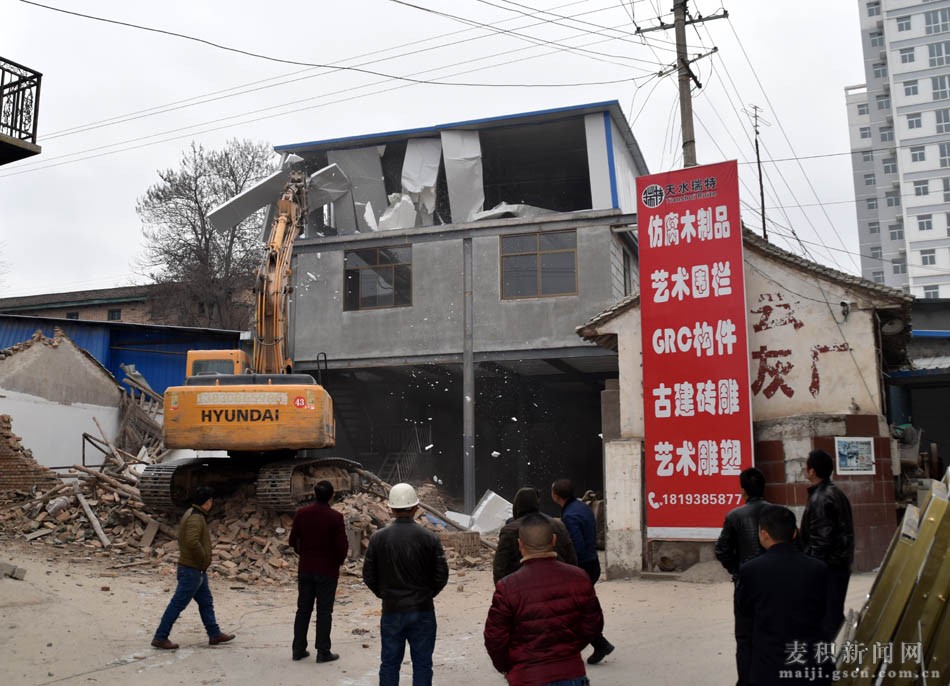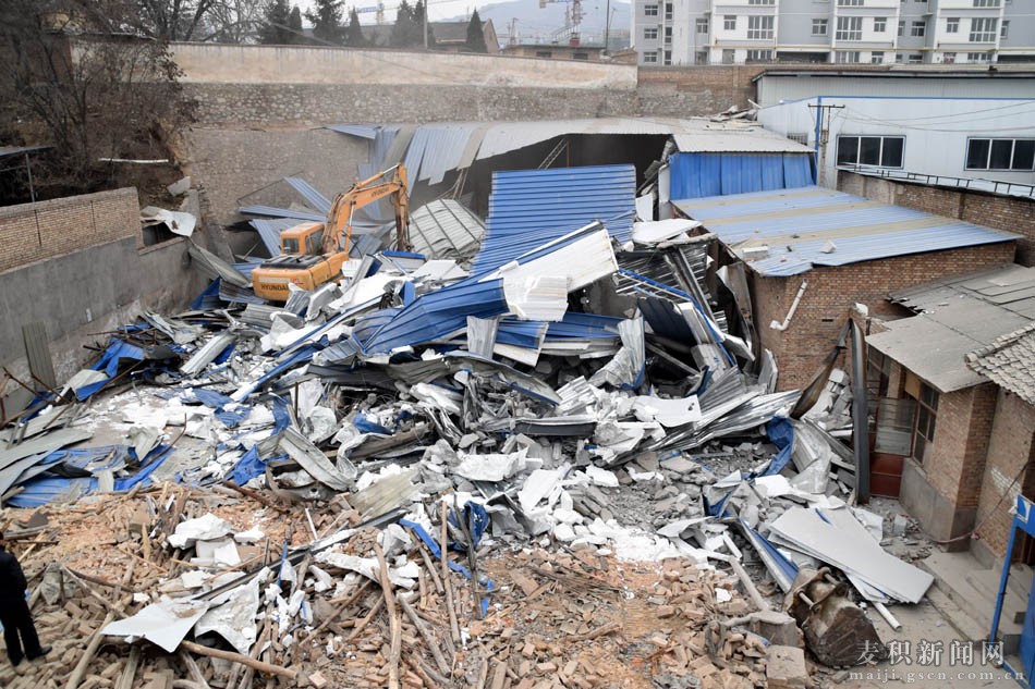 為切實保障天水南站站前廣場重點項目建設,結(jié)合當前全區(qū)開展的“兩違”整治行動,12月24日,麥積區(qū)再次組織城管、國土、公安等執(zhí)法部門和花牛鎮(zhèn)組成60余人的聯(lián)合執(zhí)法組,在區(qū)包抓領(lǐng)導現(xiàn)場督辦和花牛鎮(zhèn)的統(tǒng)一調(diào)度下,對天水南站站前廣場東側(cè)主通道內(nèi)的3家企業(yè)依法進行了強制拆除,拆除面積2800余平方米。