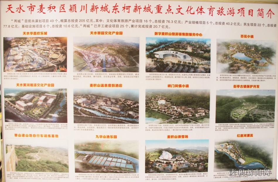 穎川新城、東柯新城地處麥積主城區(qū)、天水國家級經(jīng)濟(jì)技術(shù)開發(fā)區(qū)與麥積山5A級風(fēng)景區(qū)三大功能板塊之間,是全市文化旅游資源聚集區(qū),也是城市拓展的主要承載區(qū)。該區(qū)域總面積368平方公里,其中城市控制區(qū)面積28.2平方公里!皟沙恰蹦壳肮仓\劃文化旅游產(chǎn)業(yè)、產(chǎn)業(yè)培植、民生、基礎(chǔ)設(shè)施等項目49個,概算總投資205億元。目前已開工25個項目,累計完成投資20多億元。