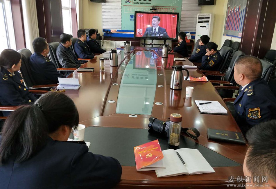 。蚰蠄(zhí)法中隊(duì)收看黨的十九大開(kāi)幕盛況)