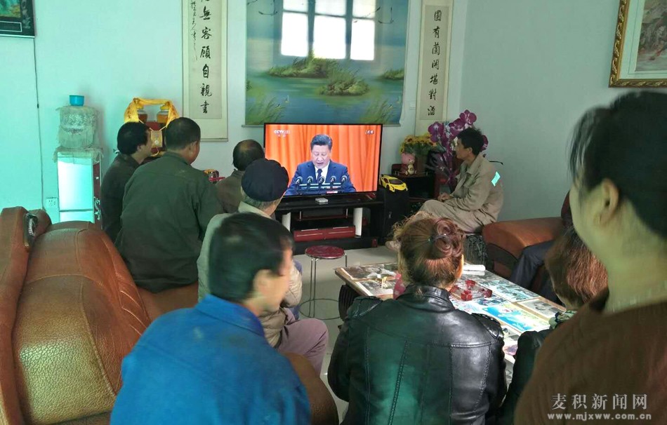 。|岔鎮(zhèn)土橋村群眾在家收看黨的十九大開幕盛況)