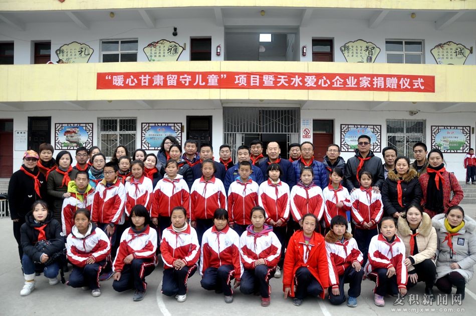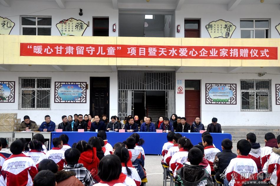 12月8日,在麥積區(qū)花牛鎮(zhèn)白家河學(xué)校,來自深圳市陽光心理健康基金會和天水市的愛心企業(yè)家在這里聯(lián)合舉行了“暖心甘肅留守兒童項(xiàng)目暨天水愛心企業(yè)家捐贈儀式”,該校27名貧困學(xué)生得到了社會各界的愛心資助,130多名學(xué)生受到了愛心捐贈。在寒冷的冬天里,這所小小的鄉(xiāng)村學(xué)校到處洋溢著愛的溫暖。