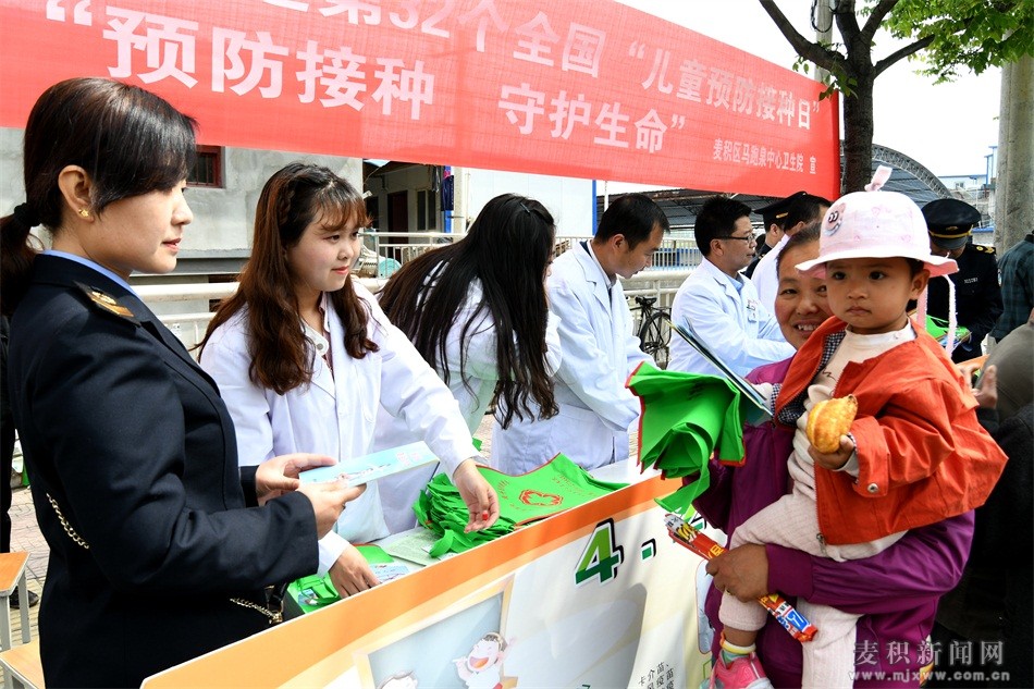 4月25日,在第32個全國“兒童預(yù)防接種日”之際,麥積區(qū)馬跑泉中心衛(wèi)生院組織醫(yī)務(wù)人員、衛(wèi)生監(jiān)督協(xié)管員和30多個村衛(wèi)生室工作人員積極開展以“預(yù)防接種,守護(hù)生命”為主題的宣傳活動。