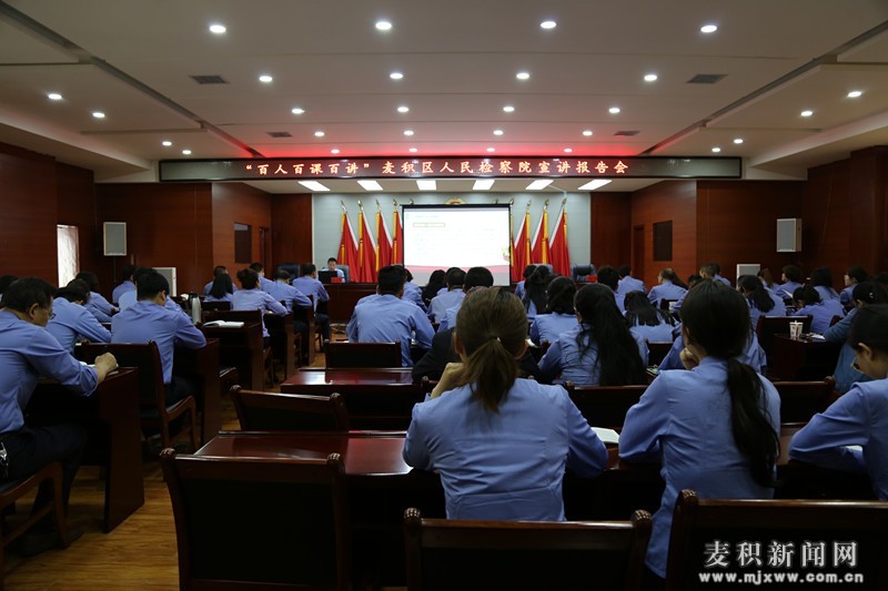 區(qū)檢察院 為全面、深入學習領會習近平新時代中國特色社會主義思想和黨的十九大精神,按照區(qū)委宣傳部《關于組織開展全區(qū)2018年度理論學習宣講工作的通知》精神,近日,麥積區(qū)檢察院舉辦“百人百課百講”宣講報告會,邀請區(qū)委黨校講師程治隆作“新時代的基本方略——認真學習貫徹黨在新時代的行動綱領”專題講座,區(qū)檢察院班子成員及全體干警參加宣講會。