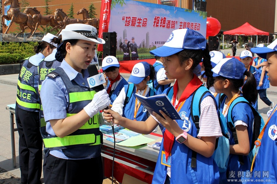 6月2日,來(lái)自麥積區(qū)的70多名新華小記者受邀參加由麥積區(qū)交通安全委員會(huì)舉辦的“珍愛生命拒絕酒駕”主題宣傳活動(dòng),小記者與麥積區(qū)公安分局交警大隊(duì)的交警們?cè)邴湻e區(qū)馬跑泉市政廣場(chǎng)共同進(jìn)行了宣傳、體驗(yàn)、采訪等內(nèi)容的“小手拉大手,安全路上走”慶六一互動(dòng)活動(dòng)。