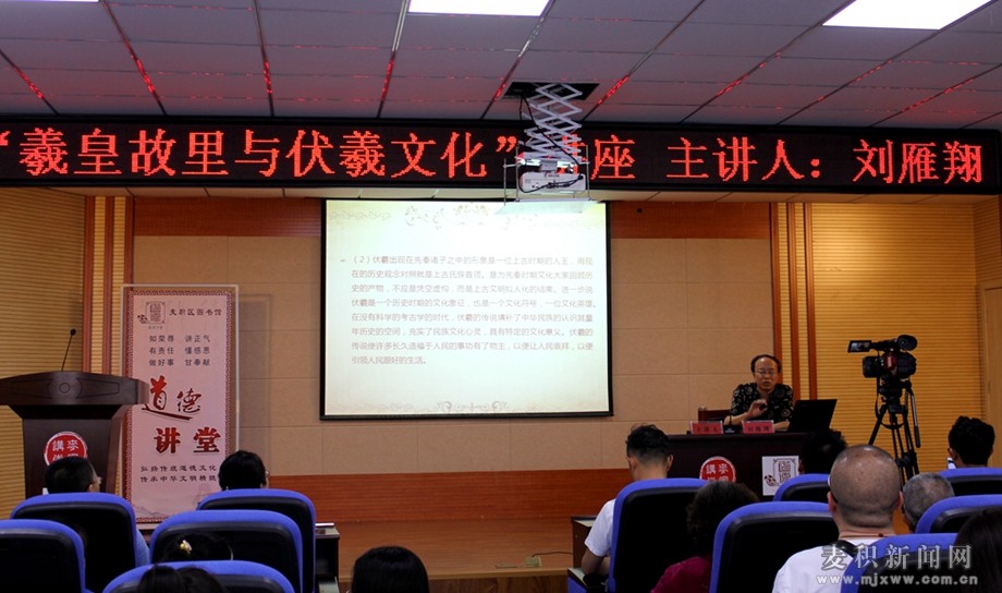 為弘揚(yáng)伏羲文化,堅(jiān)定文化自信,傳承中華文明,作為2018年“節(jié)會(huì)”麥積區(qū)系列文化活動(dòng)之一,6月16日,麥積區(qū)圖書館特別邀請?zhí)焖畮煼秾W(xué)院文史學(xué)院教授劉雁翔作題為《羲皇故里與伏羲文化》的專題講座,新華小記者受邀參加了此次公益講座,現(xiàn)場聆聽學(xué)習(xí)并進(jìn)行了互動(dòng)采訪,讓小記者進(jìn)一步了解家鄉(xiāng)歷史文化,提升自己對家鄉(xiāng)的歸屬感及自豪感,培育內(nèi)在能量,激發(fā)熱愛家鄉(xiāng)的人文情懷。