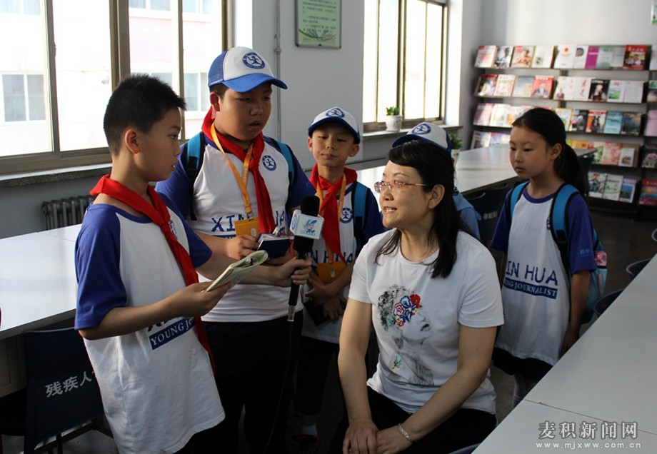 講座結(jié)束后,新華小記者對劉雁翔和麥積區(qū)圖書館館長周改珠進(jìn)行了采訪,并參觀了圖書館綜合借書處,報(bào)紙閱覽室,期刊閱覽室,未成年人閱覽室,電子閱覽室和親子閱讀室,文獻(xiàn)閱覽室和古籍閱覽室,開架書庫,閉架書庫等等。琳瑯滿目的圖書讓小記者們應(yīng)接不暇,置身于知識(shí)海洋中小記者們在活動(dòng)之余還不忘體驗(yàn)閱讀的快樂。