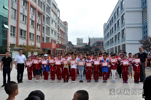 頒獎環(huán)節(jié),校領(lǐng)導(dǎo)分別公布了龍園小學(xué)上學(xué)期英語聽力競賽獲獎學(xué)生名單、高年級數(shù)學(xué)競賽獲獎學(xué)生名單、甘肅省青少年科技創(chuàng)新大賽獲獎學(xué)生名單、龍園小學(xué)首屆“校長杯”乒乓球班級聯(lián)賽獲獎學(xué)生名單及班級名單、上學(xué)期優(yōu)秀班級,并一一頒發(fā)獎狀及獎品。