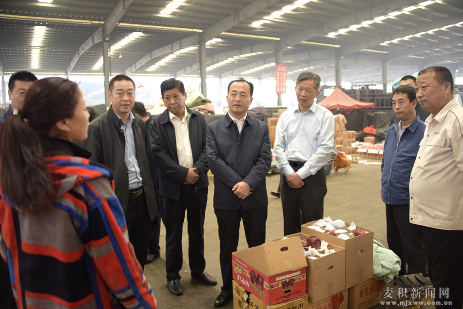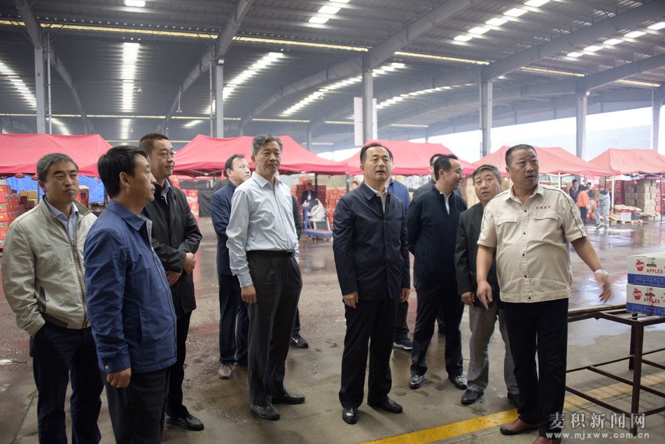 麥積新聞網(wǎng) 天津訊 9月28日上午,麥積區(qū)委副書記、區(qū)長成少平帶領(lǐng)麥積區(qū)考察團(tuán)一行考察天津市紅旗農(nóng)貿(mào)綜合批發(fā)市場,深入了解市場規(guī)模、運(yùn)行管理以及花牛蘋果等麥積區(qū)特色農(nóng)產(chǎn)品在國內(nèi)市場銷售情況。麥積區(qū)委常委、副區(qū)長高福光,副區(qū)長王啟峰一同考察。天津市援甘總指揮、甘肅省扶貧辦副主任宋友好,西青區(qū)農(nóng)經(jīng)委副主任楊彥芳,西營門街道辦事處副主任郭有星,天津王頂?shù)碳瘓F(tuán)公司總經(jīng)理李泉山,天津市紅旗農(nóng)貿(mào)綜合批發(fā)市場總經(jīng)理房振軍陪同。