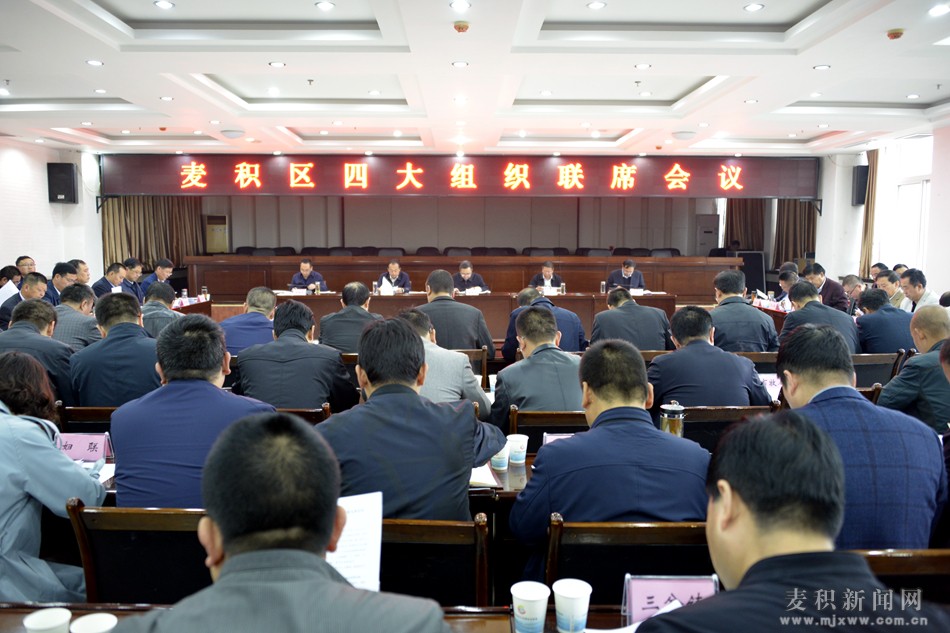 10月16日上午,麥積區(qū)召開四大組織聯(lián)席會議。市政協(xié)副主席、區(qū)委書記張智明出席會議并講話,區(qū)委副書記、區(qū)長成少平主持會議。區(qū)四大組織在家領(lǐng)導(dǎo)賈應(yīng)珍、楊續(xù)祥、牛新虎、朱剛、孫忠平、趙繼文、杜崢嶸、閻小鵬、楊棟、周岳紅等出席會議。