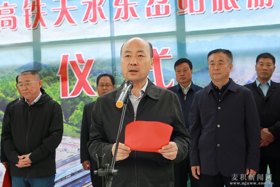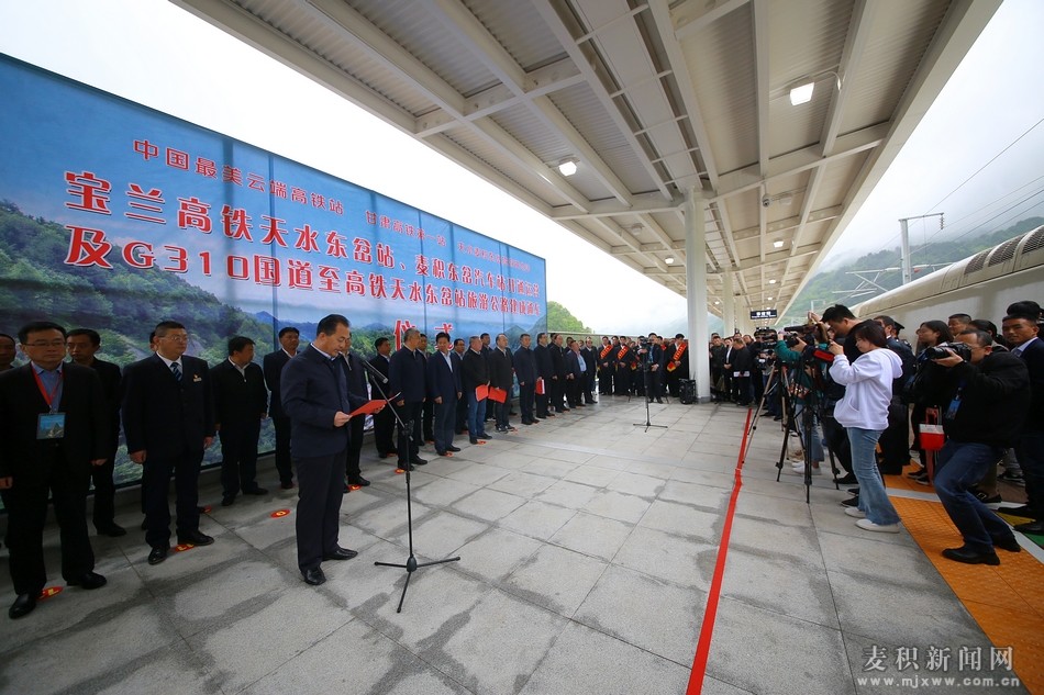(省政協(xié)副主席、天水市委書記王銳宣布寶蘭高鐵天水東岔站、麥積東岔汽車站及G310國道至東岔站旅游公路開通運(yùn)營)