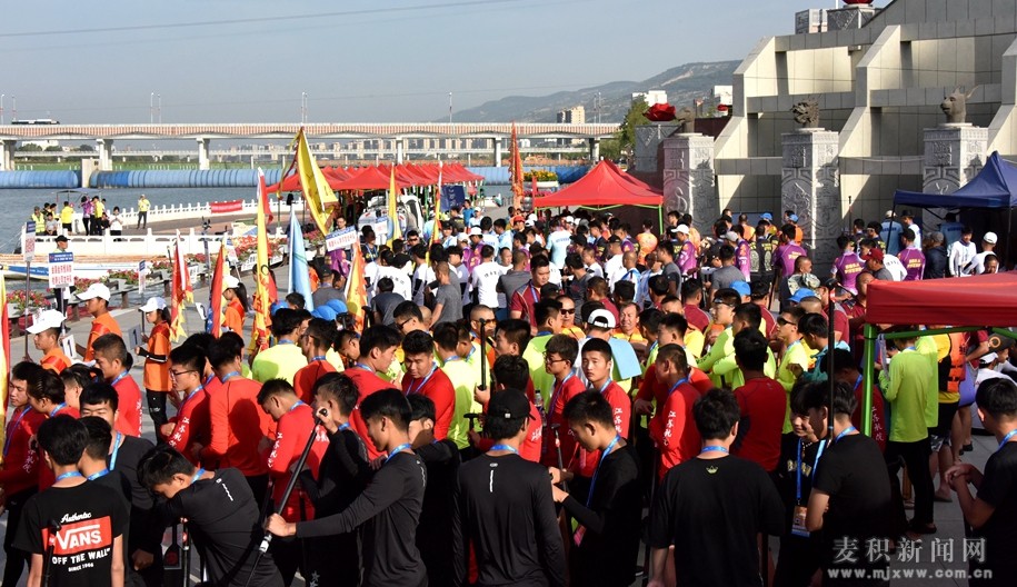 吳明明、王銳、蔣曉強(qiáng)、王軍、馮沙駝、楊林、何懿、錢萬(wàn)杰、雷鳴、趙四輩、張建杰、賈義翔、郝文杰、逯克宗、屈光平、張智明等領(lǐng)導(dǎo)嘉賓共同為參賽龍舟披紅點(diǎn)睛。