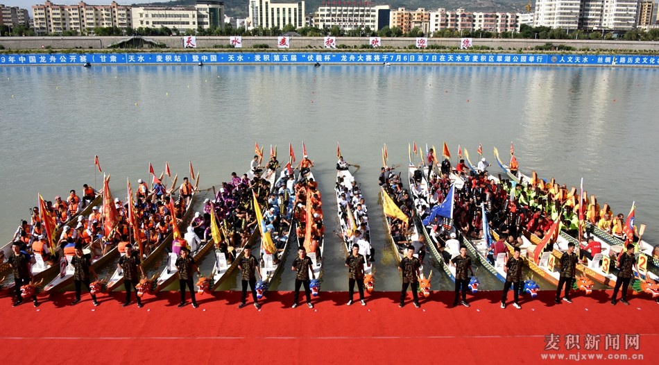 麥積翠湖碧波悠、鑼鼓催棹競(jìng)龍舟。7月7日,2019年中國(guó)龍舟公開賽(中國(guó)·天水·麥積站)暨中國(guó)·天水·麥積第五屆“伏羲杯”龍舟大賽在清波蕩漾、風(fēng)景絢麗的麥積區(qū)翠湖公園龍舟賽場(chǎng)隆重開幕。