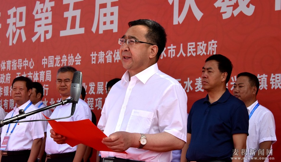 省政協(xié)副主席、天水市委書記王銳宣布2019年中國(guó)龍舟公開賽(中國(guó)·天水·麥積站)暨中國(guó)·天水·麥積第五屆“伏羲杯”龍舟大賽開幕。市委副書記、市長(zhǎng)王軍講話。市政協(xié)副主席、麥積區(qū)委書記張智明致辭。麥積區(qū)委副書記、區(qū)長(zhǎng)成少平主持開幕式。