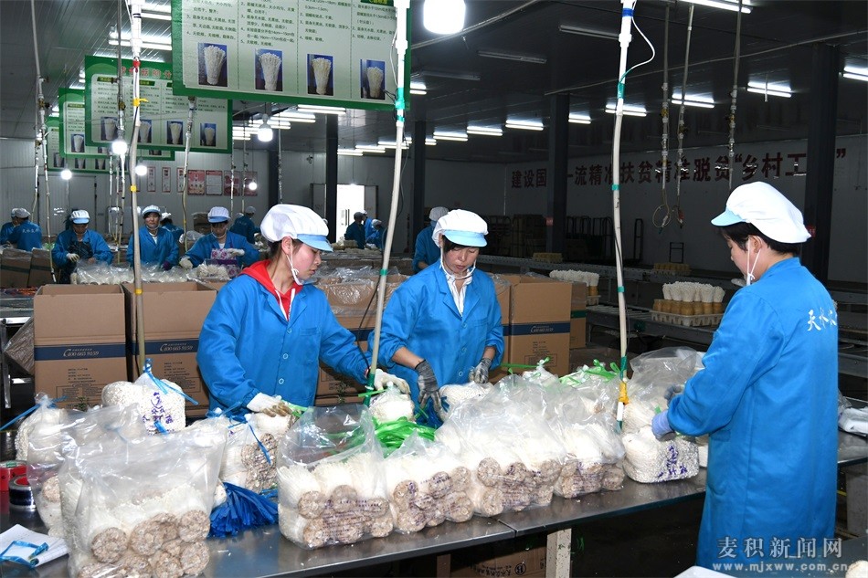 麥積區(qū)融媒體中心訊(特約記者 竇耀輝)8月24日,位于麥積區(qū)中灘鎮(zhèn)天水國家農(nóng)業(yè)科技園區(qū)內(nèi)的——天水眾興菌業(yè)科技股份有限公司“巾幗扶貧車間”工作人員正在分揀包裝金針菇。