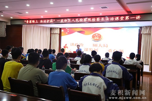 為進一步加強未成年人法治教育,提高學生法治意識和自我保護能力,構建和諧、安全的校園環(huán)境,近日,繼麥積區(qū)檢察院黨組書記、檢察長張國倉帶頭給天水市二中學生講授法治課后,區(qū)檢察院其他黨組成員也紛紛“變身”法治副校長,走進校園開展法治宣講。