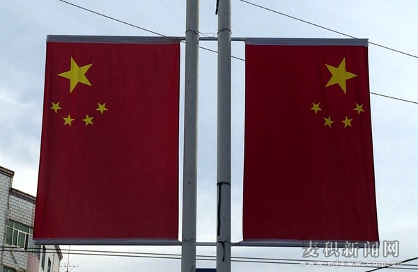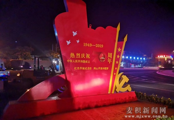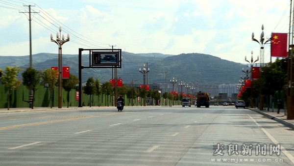 目前,麥積區(qū)已經(jīng)安裝懸掛國旗2萬余面,設(shè)置異形牌150余個,并在重要路段制作安裝了喜迎中華人民共和國成立70周年廣告宣傳版面。