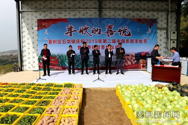 9月23日,麥積區(qū)五龍鎮(zhèn)在扶貧產(chǎn)業(yè)園舉行慶祝第二屆中國(guó)農(nóng)民豐收節(jié)暨消費(fèi)扶貧簽約儀式。區(qū)委副書(shū)記朱剛、區(qū)人大常委會(huì)副主任竇順良、五龍鎮(zhèn)及相關(guān)采購(gòu)單位負(fù)責(zé)人、部分群眾代表共計(jì)100余人參加活動(dòng)。