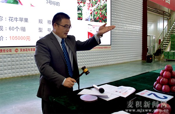 活動(dòng)吸引來自廣西、湖南、上海3家企業(yè)及當(dāng)?shù)?位競(jìng)買人參加競(jìng)拍,此次競(jìng)拍標(biāo)的均來自麥積區(qū)貧困戶,分別是1號(hào)標(biāo)的每箱8盒裝的花牛蘋果100箱,二號(hào)標(biāo)的散裝花牛蘋果10噸,三號(hào)標(biāo)的物散裝花牛蘋果10噸,經(jīng)過一番競(jìng)爭,最終來自廣西、湖南、上海的客商分別以16000元、135000元、140000的價(jià)格拍得1、2、3號(hào)標(biāo)的物。現(xiàn)場(chǎng)對(duì)“花牛王”蘋果的拍賣,將活動(dòng)推入高潮,最終來自麥積區(qū)馬跑泉鎮(zhèn)的當(dāng)?shù)馗?jìng)買人以1688元的價(jià)格競(jìng)得拍品。此次拍賣收入將全部捐給麥積區(qū)麥積鎮(zhèn)灘子村脫貧事業(yè)。