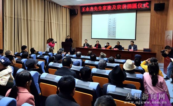 麥積區(qū)融媒體中心訊 (記者 龍?jiān)骑w 丁承志)10月31日,麥積區(qū)博物館舉行王永杰先生家族及宗親捐匾儀式。市政協(xié)副主席屈光平、區(qū)政協(xié)副主席胡桂琳出席捐匾儀式。
