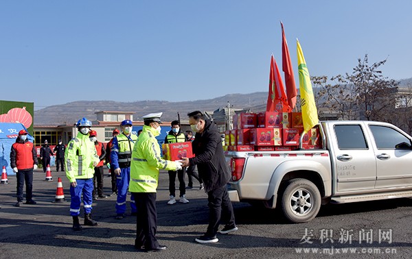麥積區(qū)融媒體中心訊(記者 李欣 趙怡天)抗擊新型冠狀病毒感染的肺炎疫情,麥積區(qū)各界都在盡己所能,共渡難關(guān)。2月3日,50箱花牛蘋(píng)果經(jīng)過(guò)搬運(yùn)、碼放、裝車,從愛(ài)心捐贈(zèng)企業(yè)運(yùn)出,送往天水東收費(fèi)站防疫檢測(cè)點(diǎn),為堅(jiān)守在一線崗位的交警、公安及醫(yī)務(wù)人員送去了關(guān)心。
