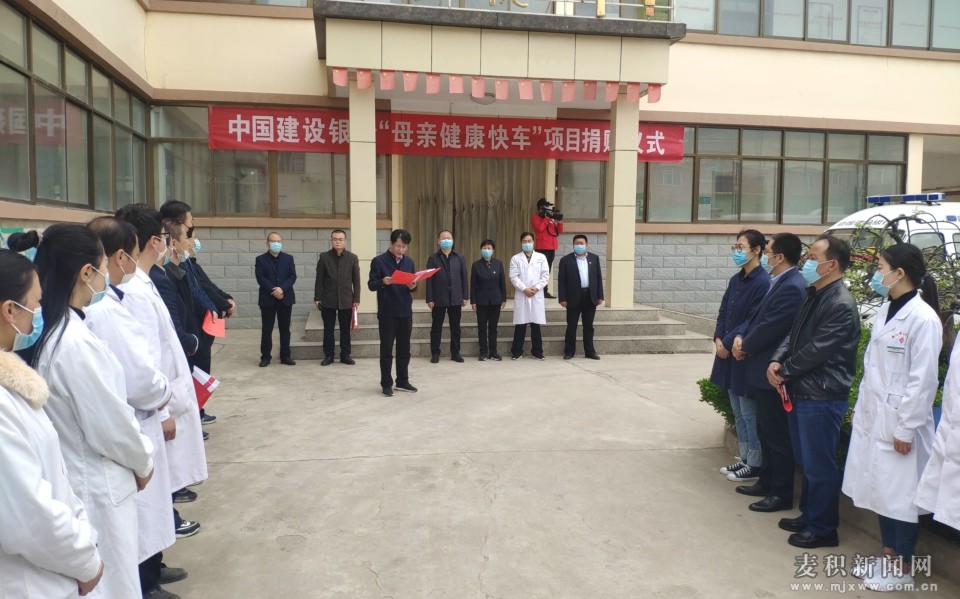 麥積區(qū)融媒體中心訊(記者 丁啟 丁承志)4月10日,中國(guó)建設(shè)銀行天水分行“母親健康快車”捐贈(zèng)儀式在麥積區(qū)新陽(yáng)中心衛(wèi)生院舉行。區(qū)委副書記朱剛出席儀式并講話,區(qū)委常委、副區(qū)長(zhǎng)周岳紅主持儀式。