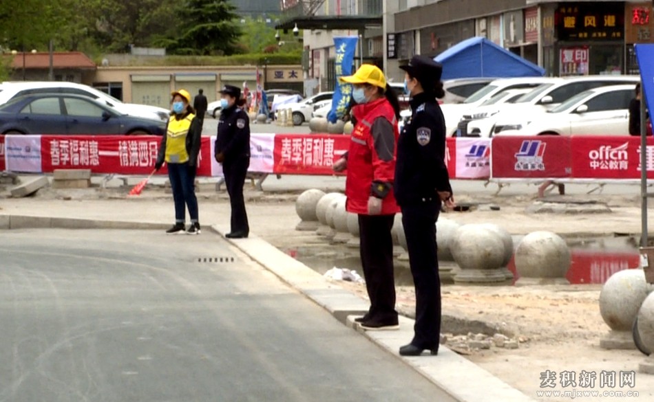 在麥積區(qū)天河北路,原來(lái)的十字路口人行通道已設(shè)立分隔式護(hù)欄,麥積區(qū)城管局的工作人員和交通安全引導(dǎo)員在路口共同值守,對(duì)來(lái)往行人進(jìn)行安全引導(dǎo),并對(duì)橫穿馬路、翻越圍欄等存在安全隱患的行為進(jìn)行制止。