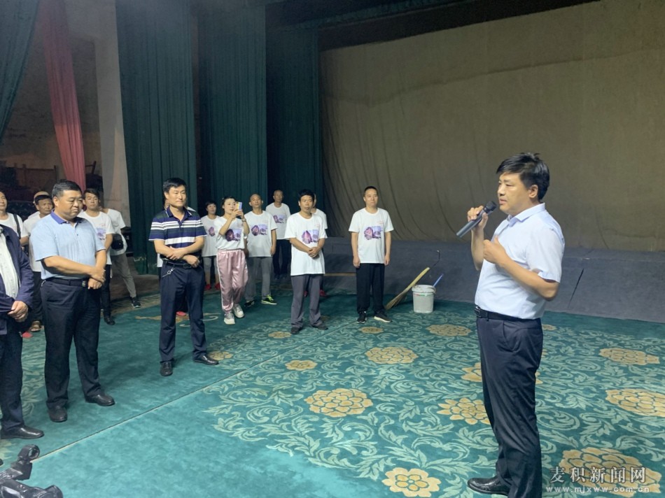 麥積區(qū)融媒體中心訊(記者 丁啟)8月11日,麥積區(qū)委常委、宣傳部部長閻小鵬帶領(lǐng)相關(guān)部門負(fù)責(zé)人看望慰問現(xiàn)代秦腔劇《村上春秋》劇組演職人員,為他們送去消暑飲品,感謝大家為該劇付出的艱辛努力,并對劇組的排練進(jìn)展表示祝賀。
