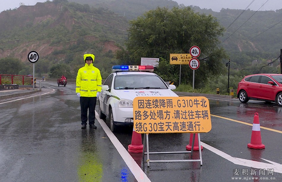 在310國道麥積轄區(qū)段,由于持續(xù)降雨天氣的影響,多處落石塌方,交通事故易發(fā),為強化事故防控,麥積交警在東岔和潘集寨東西兩頭設置執(zhí)勤點進行交通管制,實行24小時輪流執(zhí)勤,勸導將進入國道的車輛繞行。