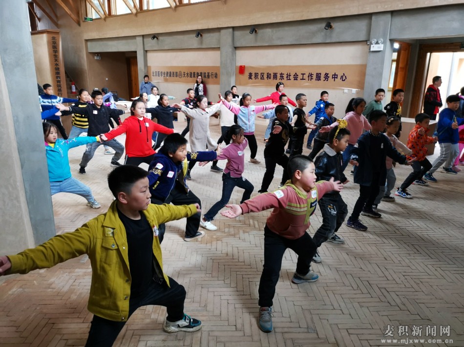 活動(dòng)中,來(lái)自麥積區(qū)甘泉鎮(zhèn)和秦州區(qū)的小學(xué)生們?cè)诖髮W(xué)生志愿者的帶領(lǐng)下學(xué)習(xí)了富有中國(guó)智慧的八段錦和易筋經(jīng),開(kāi)展了青少年膳食科普講座,學(xué)習(xí)了青少年急救知識(shí)、青少年用藥安全知識(shí),學(xué)會(huì)了如何把牙齒刷的更干凈,怎樣避免和拒絕接觸二手煙,了解了二手煙對(duì)身體的危害。