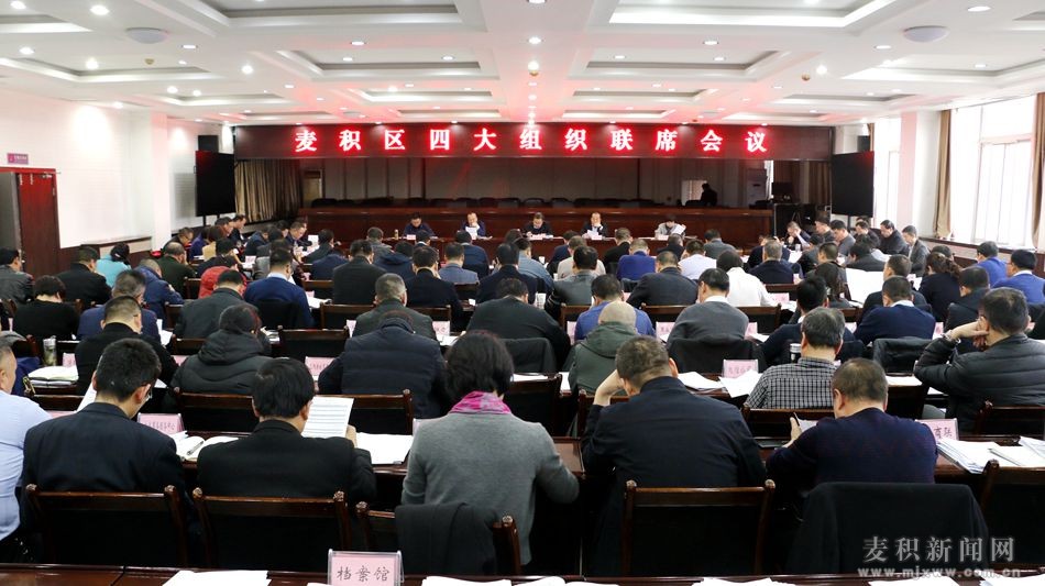 麥積區(qū)融媒體中心訊(記者 丁承志 劉秋鈺)11月25日,麥積區(qū)組織召開四大組織聯(lián)席會(huì)議,認(rèn)真學(xué)習(xí)貫徹黨的十九屆五中全會(huì)精神,貫徹落實(shí)市領(lǐng)導(dǎo)調(diào)研指示和全市重點(diǎn)項(xiàng)目建設(shè)觀摩檢查及匯報(bào)點(diǎn)評(píng)會(huì)議精神,深入分析查找當(dāng)前工作面臨的形勢(shì)和存在的問題,對(duì)下一階段項(xiàng)目建設(shè)、經(jīng)濟(jì)運(yùn)行等重點(diǎn)工作進(jìn)行再安排、再部署,動(dòng)員全區(qū)上下進(jìn)一步統(tǒng)一思想認(rèn)識(shí),提高政治站位,靠實(shí)工作責(zé)任,狠抓措施落實(shí),“大干三十天、奮力保目標(biāo)”,扎實(shí)做好“六穩(wěn)”“六!惫ぷ,統(tǒng)籌推進(jìn)全區(qū)經(jīng)濟(jì)社會(huì)高質(zhì)量發(fā)展,為全區(qū)“十三五”規(guī)劃圓滿收官、全面建成小康社會(huì)、實(shí)現(xiàn)“十四五”良好開局奠定堅(jiān)實(shí)基礎(chǔ)。