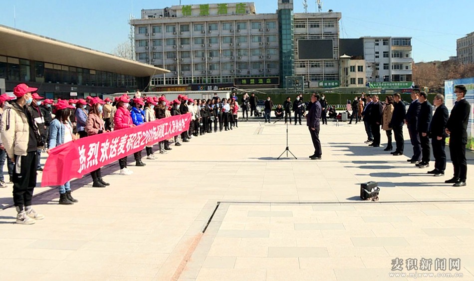 麥積區(qū)融媒體中心訊(記者 姚苗 王雯)2月19日下午,麥積區(qū)在火車站站前廣場(chǎng)舉行2021年務(wù)工人員返崗復(fù)工歡送儀式。300余名務(wù)工人員分別乘坐專列、專車踏上了赴江蘇返崗復(fù)工的征程。麥積區(qū)委常委、常務(wù)副區(qū)長(zhǎng)樊華,區(qū)人大副主任、人社局局長(zhǎng)高炳蔚,區(qū)政協(xié)副主席張福元、王進(jìn)孝前往歡送。