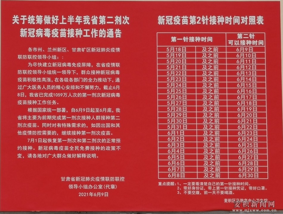 麥積區(qū)融媒體中心訊(記者 劉秋鈺 王瑋瑕)自開展新冠疫苗接種工作以來,麥積區(qū)高度重視、精心組織,有序推進新冠疫苗接種工作,6月10至30日,麥積區(qū)集中力量為已經(jīng)接種第一劑次的對象人群開展第二劑次的疫苗接種。連日來,麥積區(qū)各新冠疫苗接種點迎來了眾多接種第二針疫苗的市民。