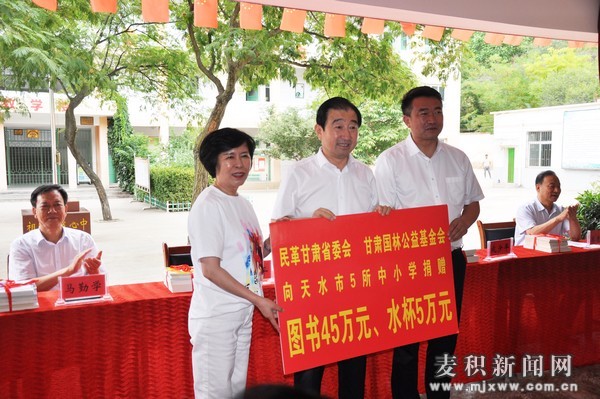 省政協(xié)副主席、民革甘肅省主委霍衛(wèi)平和甘肅國林公益基金會秘書長張乾棟向天水市5所中小學捐贈了圖書。市政協(xié)副主席、區(qū)委書記成少平等領導向學生發(fā)放了圖書。