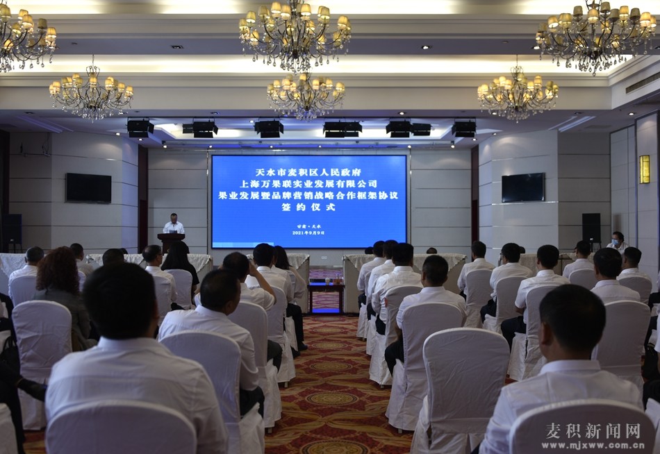 麥積區(qū)融媒體中心訊(記者 王雯 宋倩倩) 9月9日,麥積區(qū)政府與上海萬(wàn)果聯(lián)實(shí)業(yè)發(fā)展有限公司簽訂果業(yè)發(fā)展暨品牌營(yíng)銷(xiāo)戰(zhàn)略合作框架協(xié)議。市政協(xié)副主席、區(qū)委書(shū)記成少平,萬(wàn)果會(huì)萬(wàn)果聯(lián)創(chuàng)始人朱勇立,區(qū)委副書(shū)記、代區(qū)長(zhǎng)趙虎生,區(qū)人大常委會(huì)主任趙繼文,區(qū)政協(xié)主席高志強(qiáng),萬(wàn)果聯(lián)實(shí)業(yè)發(fā)展有限公司項(xiàng)目總監(jiān)魏克泉,區(qū)政府副區(qū)長(zhǎng)張樹(shù)增出席簽約儀式。區(qū)委副書(shū)記霍定明主持簽約儀式。