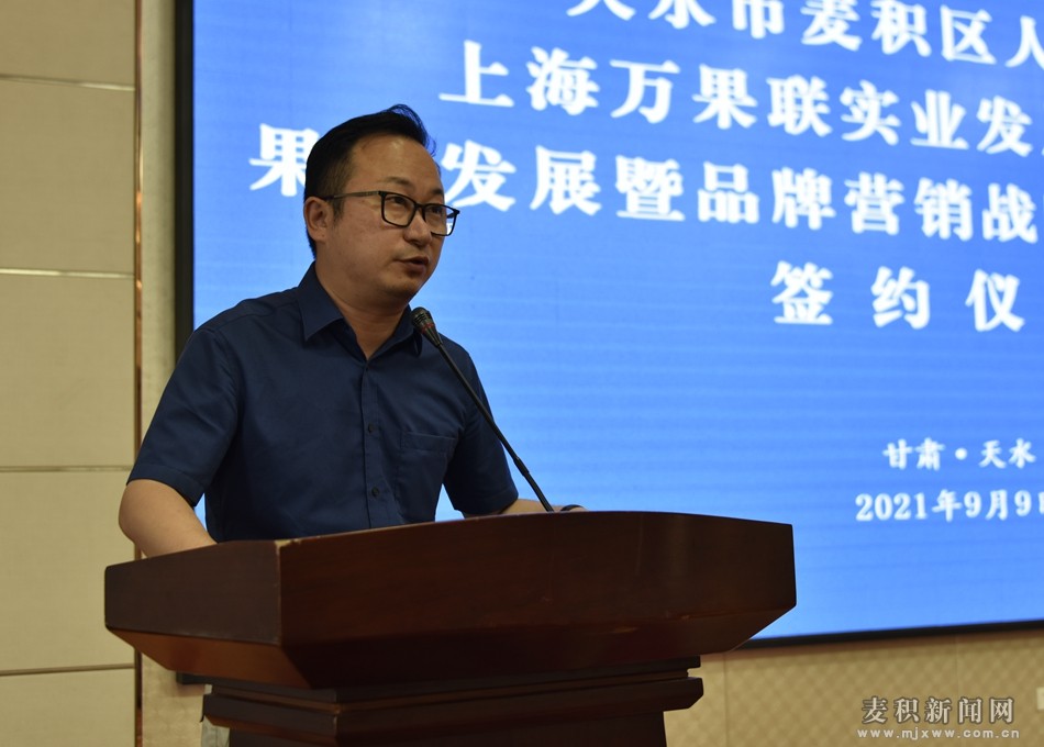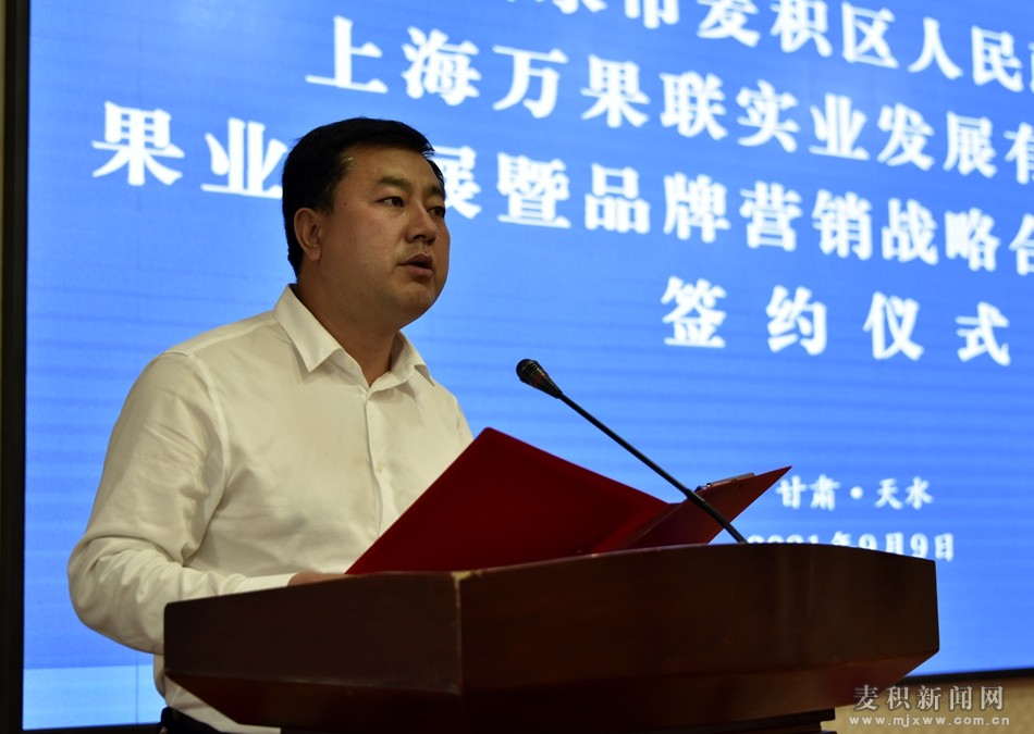 成少平指出,此次與萬(wàn)果聯(lián)實(shí)業(yè)發(fā)展有限公司順利舉行簽約儀式,實(shí)現(xiàn)合作共贏,不僅拓寬了群眾增收渠道,而且成為助力我區(qū)鞏固拓展脫貧攻堅(jiān)成果同鄉(xiāng)村振興有效銜接的重要抓手。希望萬(wàn)果聯(lián)實(shí)業(yè)發(fā)展有限公司充分發(fā)揮資金、技術(shù)、人才、管理等方面優(yōu)勢(shì),著力打造具有麥積特色的花牛蘋(píng)果產(chǎn)業(yè)品牌及產(chǎn)業(yè)帶,全力鞏固拓展花牛蘋(píng)果營(yíng)銷(xiāo)市場(chǎng),不斷擴(kuò)大花牛蘋(píng)果在全國(guó)的影響力和市場(chǎng)的占有量,為全區(qū)林果產(chǎn)業(yè)快速發(fā)展提供新動(dòng)力,為鄉(xiāng)村振興注入新活力。同時(shí),我們也熱忱希望萬(wàn)果聯(lián)實(shí)業(yè)發(fā)展有限公司一如既往地關(guān)心和支持麥積發(fā)展,在果品貯藏加工、品牌打造、創(chuàng)意服務(wù)、市場(chǎng)營(yíng)銷(xiāo)等領(lǐng)域與麥積開(kāi)展更深層次、更高水平的合作,推動(dòng)雙方協(xié)同發(fā)展、互利共贏。